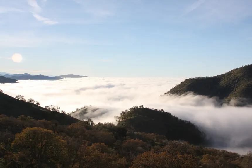 For the past week or so, Nevada County residents at different elevations may have been experiencing very different weather. If you’ve driven up or down the hill recently, you may have been surprised to see how bright and sunny (and warm!) it is at higher elevations and cold and foggy at lower elevations. This is because there has been a persistent inversion layer with its boundary right at the elevation of about Penn Valley/Lake Wildwood.