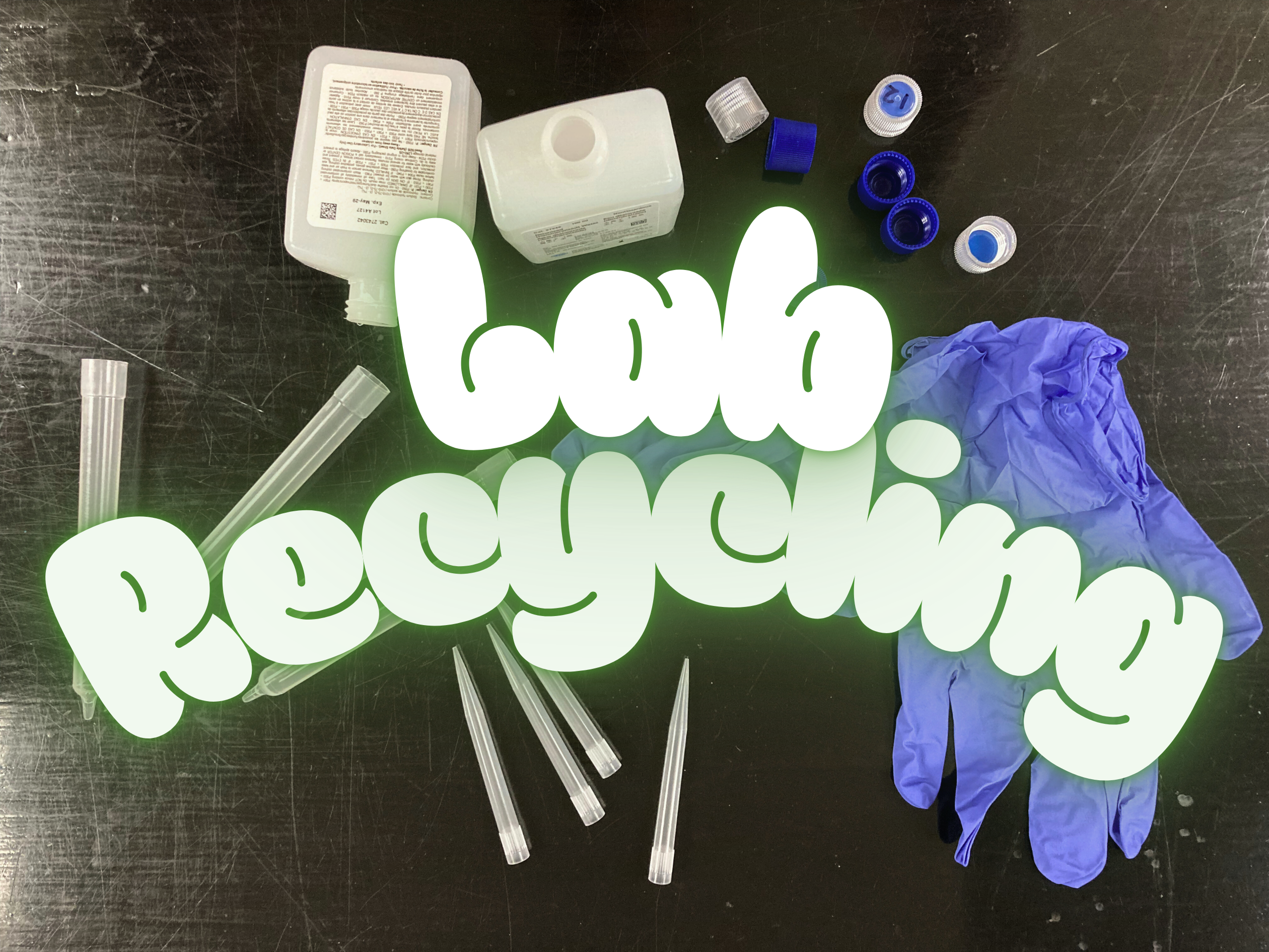 We now have three bins in our lab: pipette tips go into one, gloves into another, and reagent bottles and caps into the third. When the bins are full, we ship them off to Polycarbin, where they recycle the materials back into lab consumables! For example, they turn the pipette tips back into pipette tips and sell them on their website.