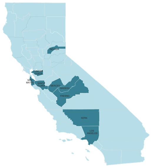 Water samples were collected from participants in nine counties: Contra Costa, Fresno, Kern, Los Angeles, Madera, Merced, Nevada, San Mateo and Santa Clara.