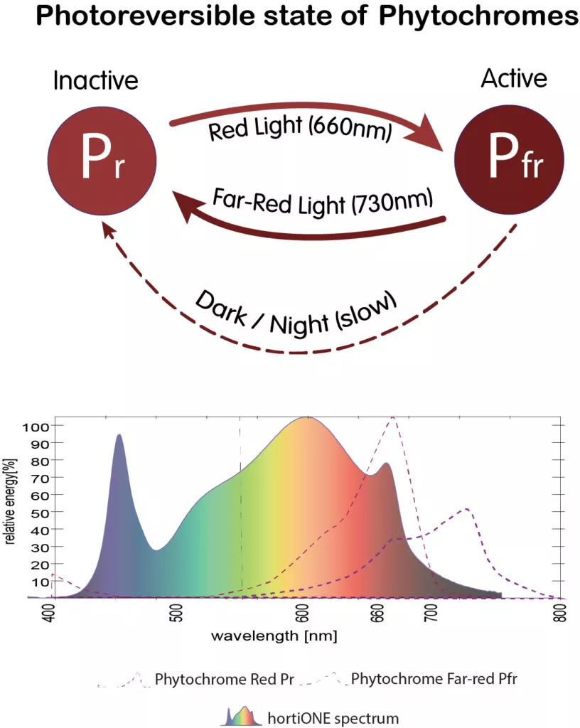 The electromagnetic spectrum of light and phytochrome response. Image credit hortiONE.